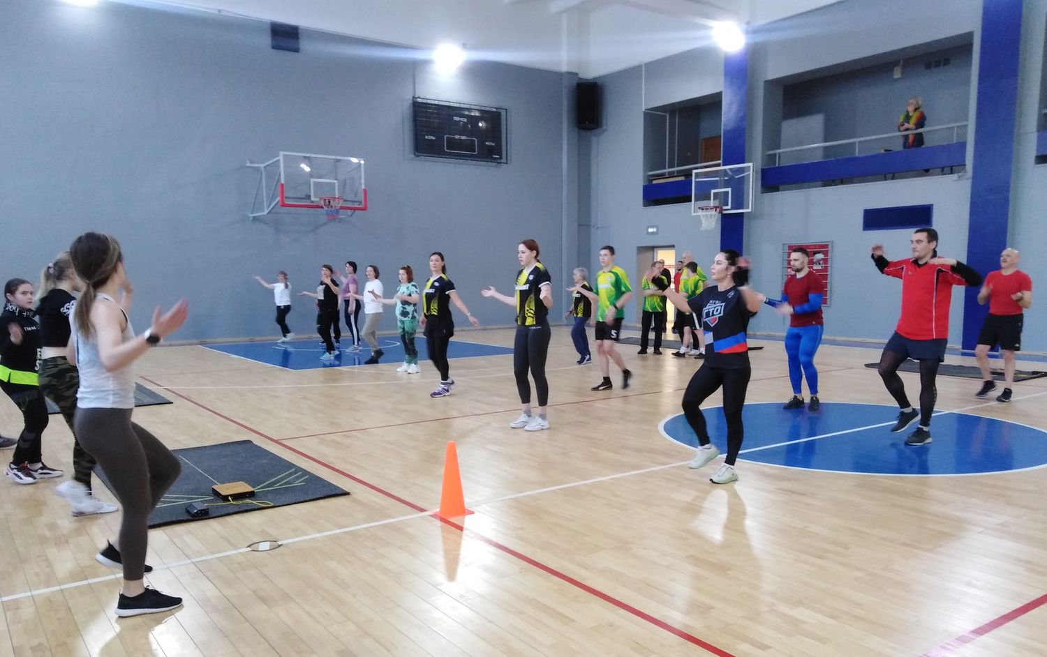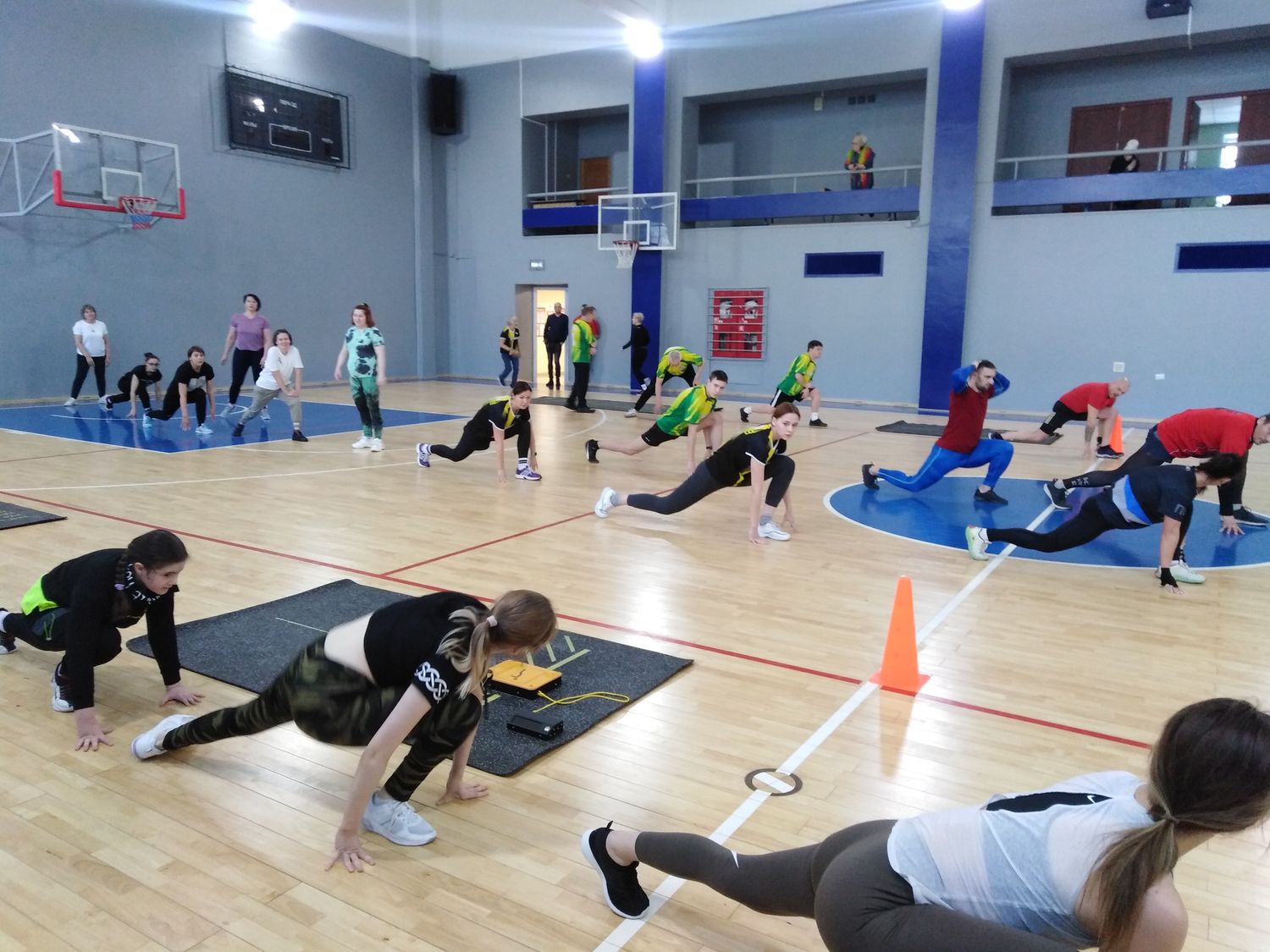 По традиции, в рамках акции «Зарядка с чемпионом» разминку с участниками провели девочки из фитнес-студии «Movimento».