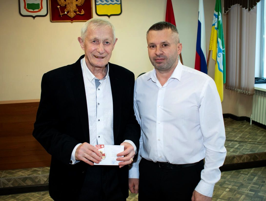 Знак отличия ГТО Виктору Григурко вручил первый заместитель главы муниципального округа - Андрей Мацкан. На мероприятии присутствовал - Дмитрий Сизов, мастер спорта РФ по гиревому спорту, имеющий статус "Лицо ГТО" на территории Завитинского муниципального округа.