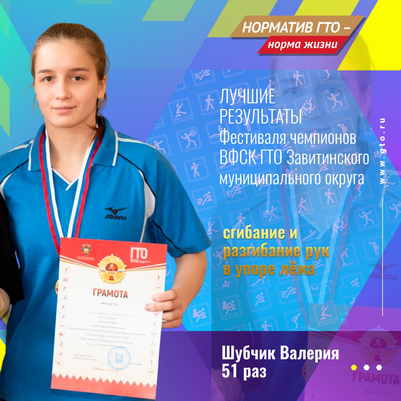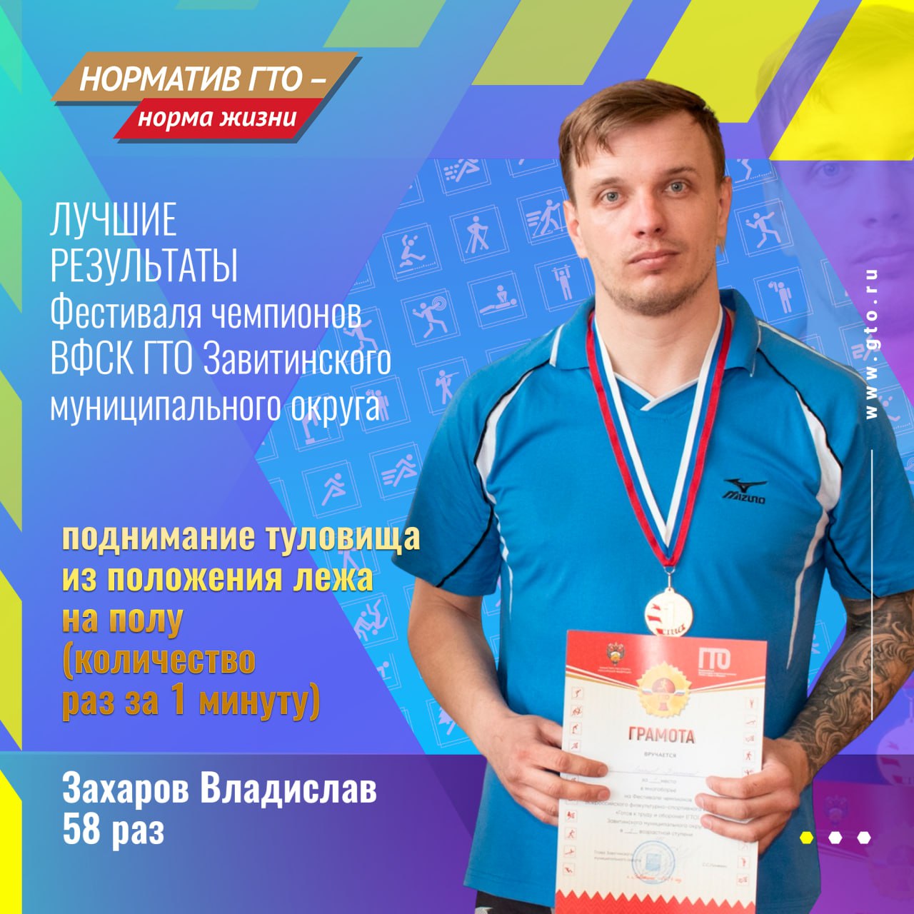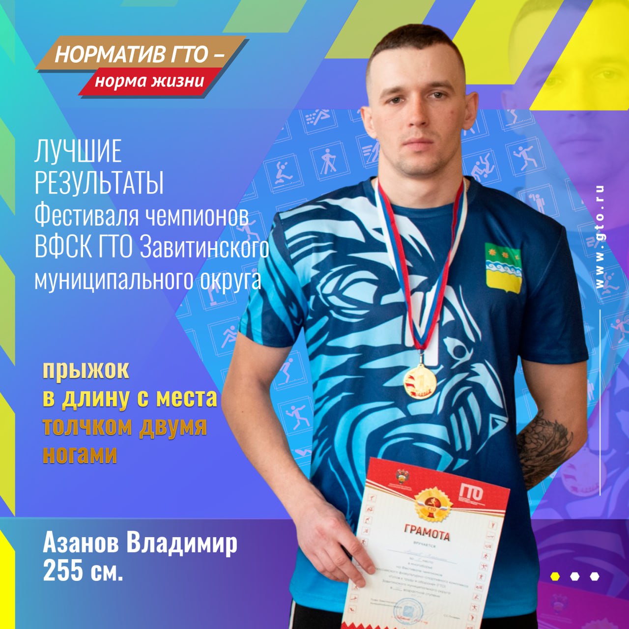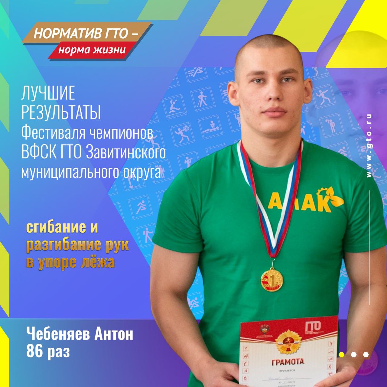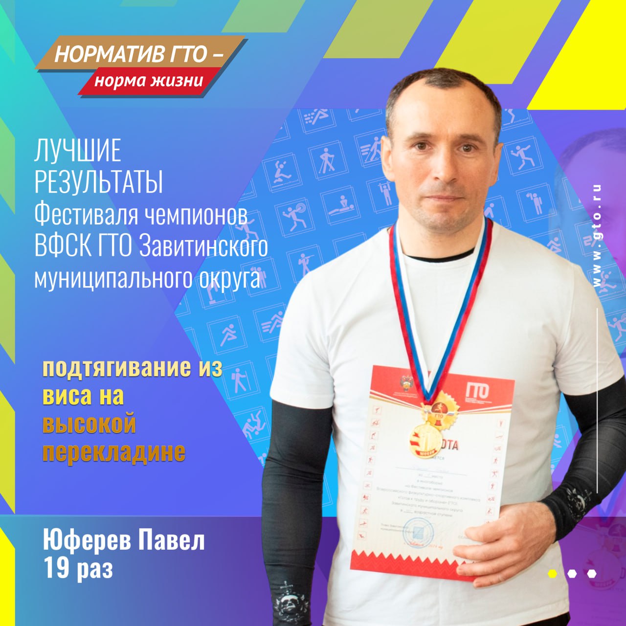 «С лучшими результатами участников, по итогам Фестиваля ВФСК ГТО и «Гонки чемпионов» должен познакомиться каждый житель нашего муниципального округа, особенно в такой знаменательный год – год 10-летия со дня подписания Указа о возрождении Всероссийского физкультурно- спортивного комплекса «Готов к труду и обороне» (ГТО)», сказал Дмитрий Сизов, мастер спорта РФ по гиревому спорту имеющий статус «Лицо ГТО».
