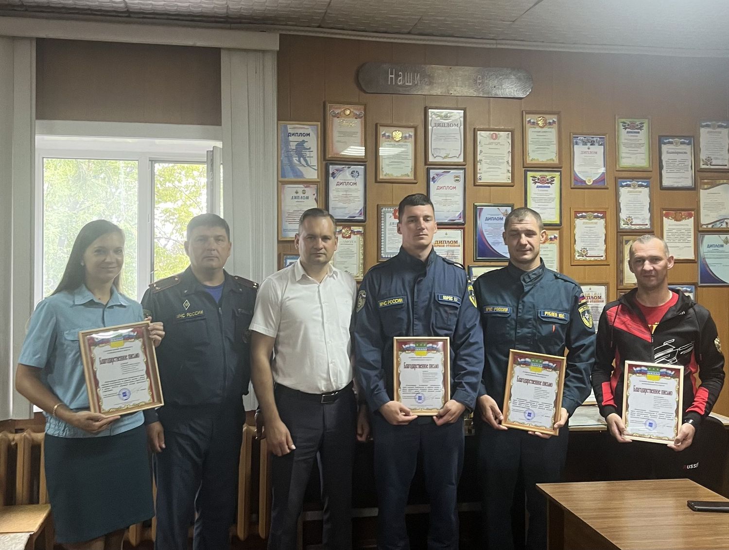 Павел Ломако, исполняющий обязанности главы муниципального округа, вручил благодарственные письма сотрудникам службы спасения за активное участие в спортивных мероприятиях, проводимых в рамках XXXVIII областной сельской комплексной Спартакиады: выполнении нормативов комплекса ГТО, семейной эстафете и силовом экстриме.