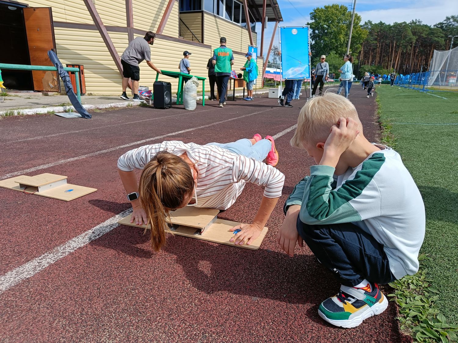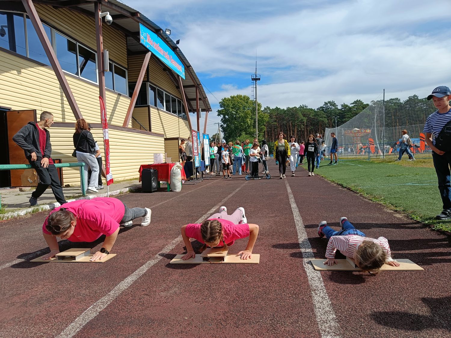 Начали спортивную часть акции зажигательным флешмобом. После все желающие смогли апробировать или выполнить несколько нормативов физкультурно-спортивного движения: наклон, прыжок и отжимание.