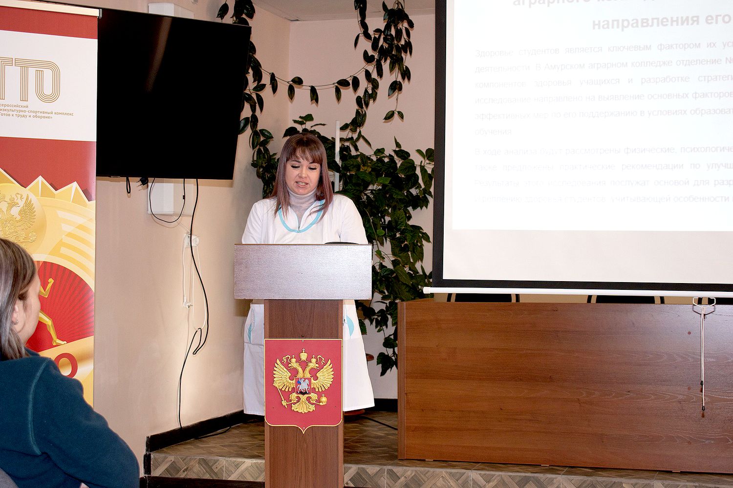 Темы: влияние занятий физической культуры на формирование специалиста агропромышленного комплекса и анализ компонентов здоровья студентов аграриев были раскрыты в информационных сообщениях педагогов колледжа и медицинского работника, а о развитии физического компонента здоровья будущих специалистов сельскохозяйственного профиля рассказала исполняющая обязанности руководителя Амурского аграрного колледжа отделение № 6 – Татьяна Ковалёва.