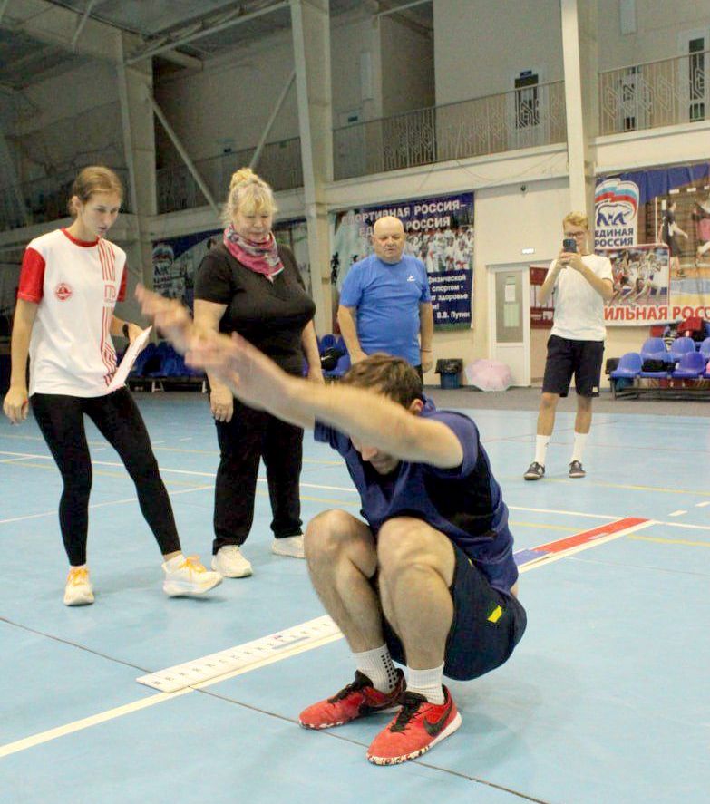 Представители "Всероссийского общества глухих" приняли участие в акции и выполнили упражнения на пресс, гибкость, отжимания от пола, а также прыжок в длину с места толчком двумя ногами.