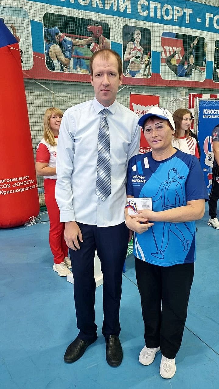 В рамках торжественной церемонии открытия были вручены знаки отличия ГТО жителям Благовещенска, активно занимающимся спортом и выполнившим нормативы комплекса «Готов к труду и обороне». Разминку для участников провели именитые спортсмены города и Амурской области из СПК «Машина» и СПК «Семён»: Полиенко Валерия, Ершов Станислав и Макаренко Иван.
