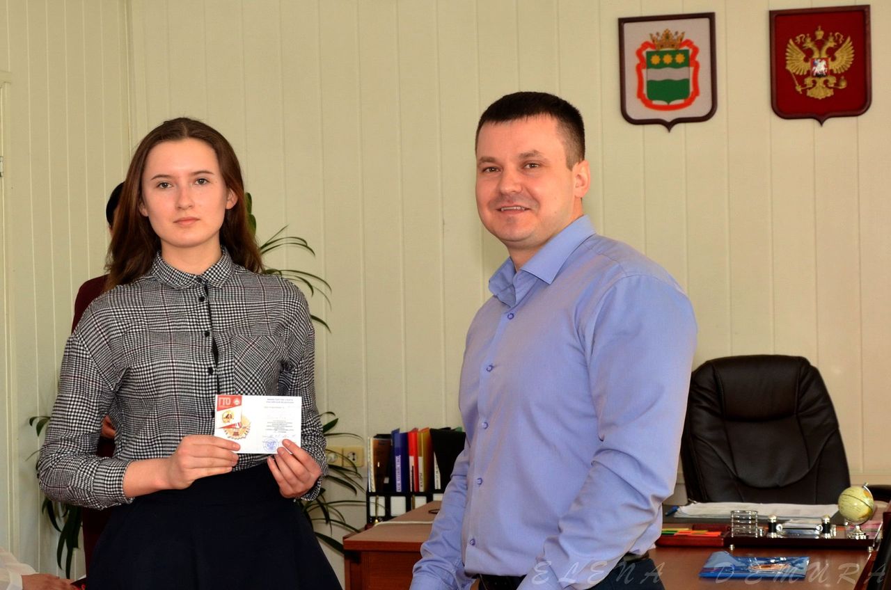 Алексею Бастрыгину, Александру Бородину, Марине Дахно, Максиму Дмитриенко, Юлии Зубченко, Дмитрию Косяченко, Евгению Левчуку, Полине Мацкан, Егору Николаенко, Никите Плешкову, Илье Чижову – глава Завитинского района, Сергей Сергеевич Линевич вручил удостоверение и золотой знак отличия ГТО.