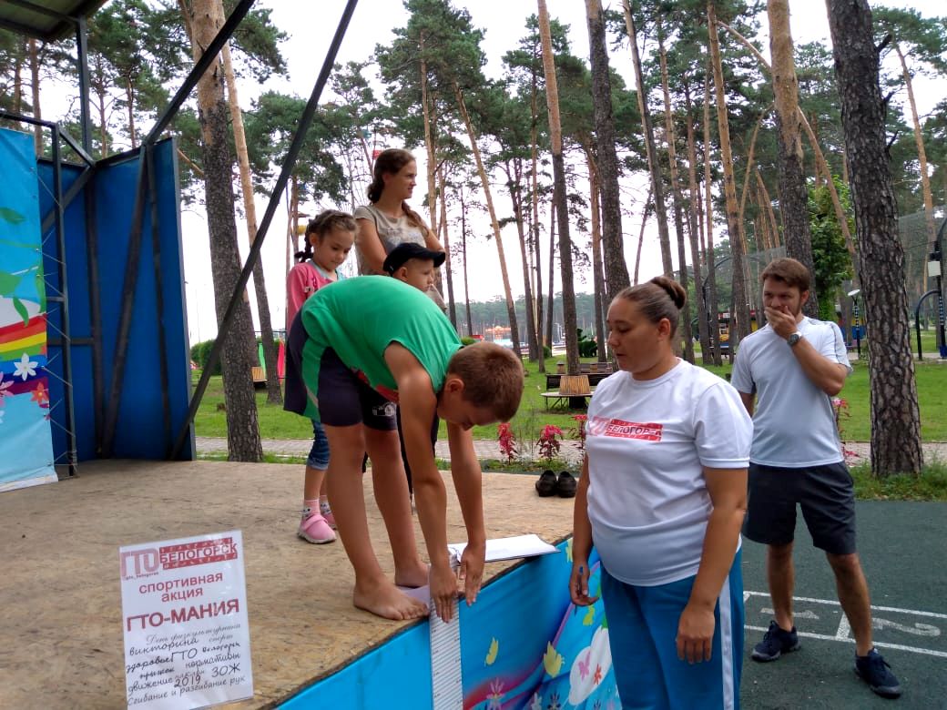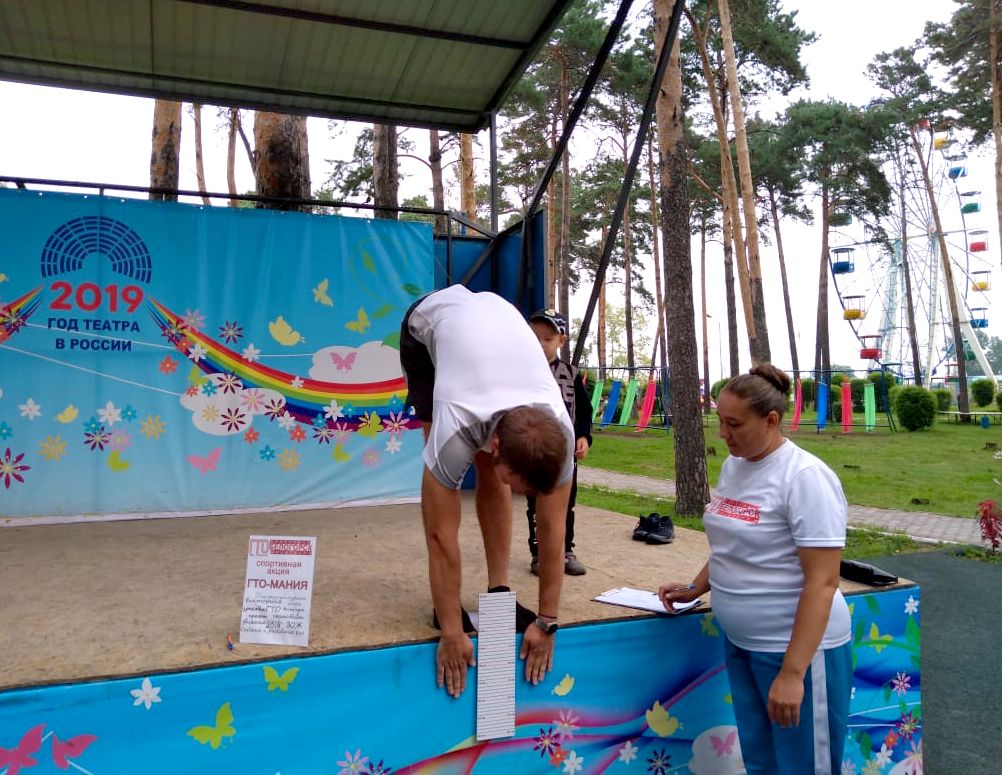 Другую часть акции посвятили выполнению норм ГТО. Каждый желающий смог проверить уровень своей физической подготовленности, а также выполнить нормативы в нескольких видах испытаний комплекса. В спортивную программу вошли виды испытаний по легкоатлетическим и гимнастическим видам: наклон вперёд из положения стоя с прямыми ногами на гимнастической скамье, прыжок в длину с места толчком двумя ногами, сгибание и разгибание рук в упоре лежа.