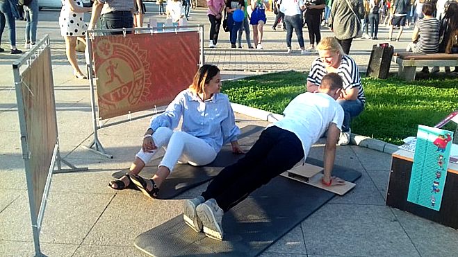 Работа площадки была направлена на приобщение жителей и гостей города к спортивному образу жизни, ознакомлению и выполнению нормативов ВФСК ГТО.