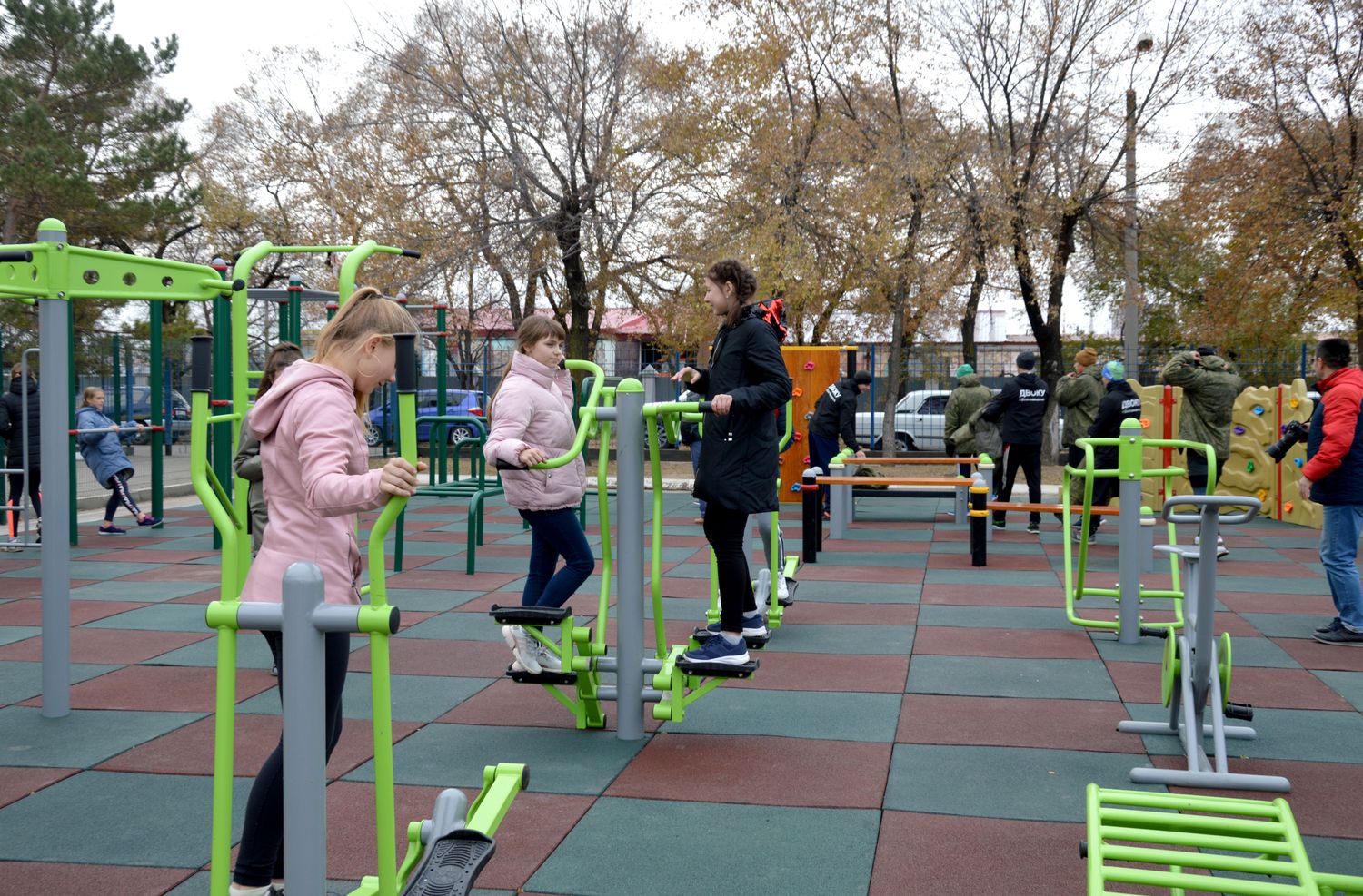 Полноценный спортивный зал под открытым небом: снаряды для жима и тяги, эллиптические тренажеры, брусья, всевозможные турники и скалодром для малышей. Это без преувеличения самая современная спортивная площадка под открытым небом в Благовещенске. На ее возведение ушло более 3-х миллионов рублей. Она предназначена не только для занятий физкультурой, но и идеальна для тестирования в рамках комплекса ГТО. Одними из первых площадку опробовали курсанты ДВОКУ и воспитанники школы олимпийского резерва. С напутственным словом к ним обратилась зампред областного Правительства Ольга Лысенко: