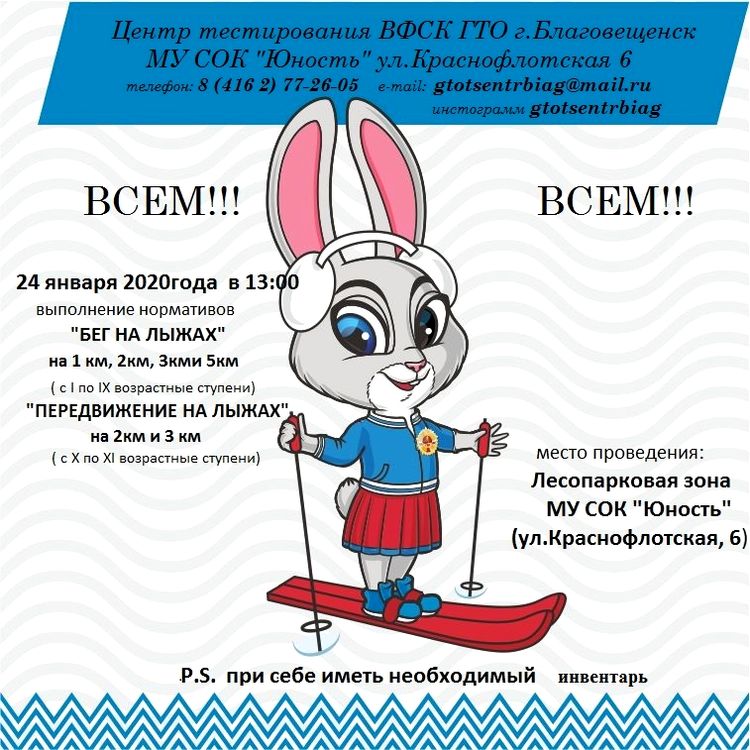 26 января 2020 г. - выполнение норматива ВФСК ГТО "Скандинавская ходьба" Место проведения МУ СОК "Юность" (ул. Краснофлотская, 6) Время - 14.00 час. |