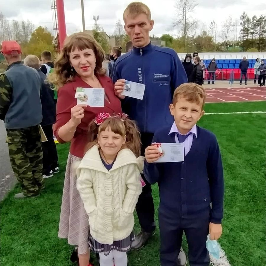 Министр по физической культуре и спорту Амурской области Д.Г. Кутека вручил знаки отличия Всероссийского физкультурно-спортивного комплекса "Готов к труду и обороне" семьям Мошковым Александру Викторовичу серебряный знак, Валентине Александровне бронзовый и Скробовым Руслану Владимировичу – серебро, Екатерине Андреевне – бронза, у сына Андрея – золото.