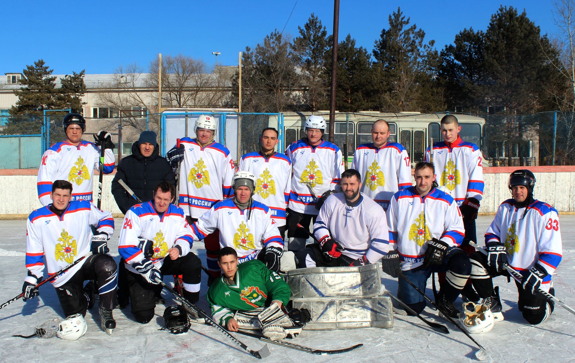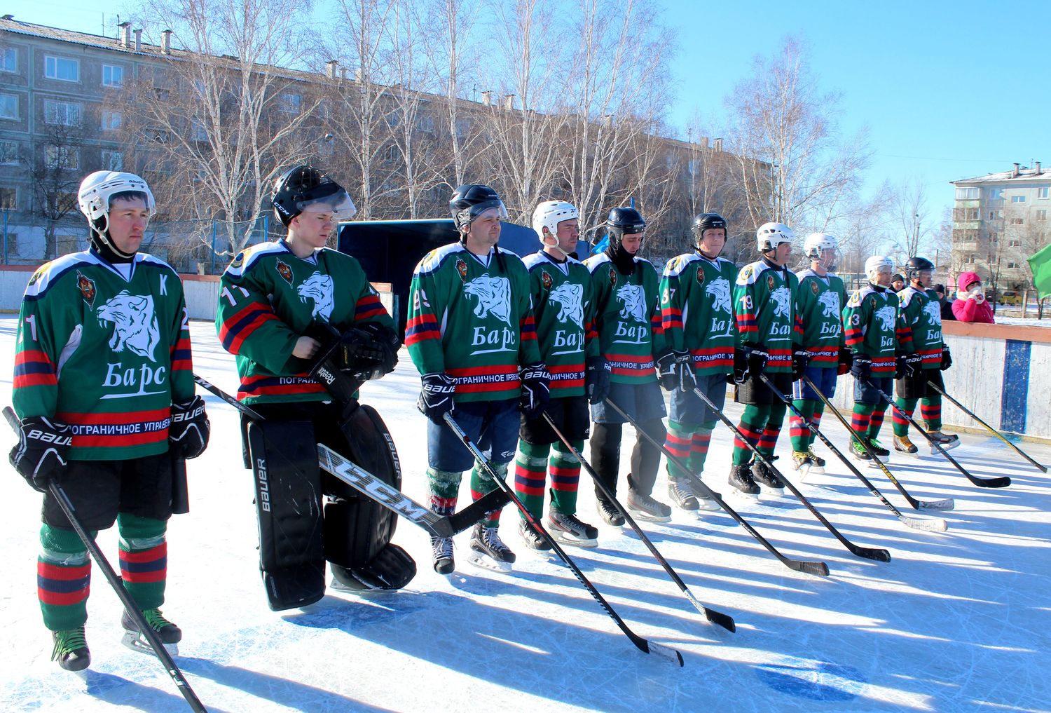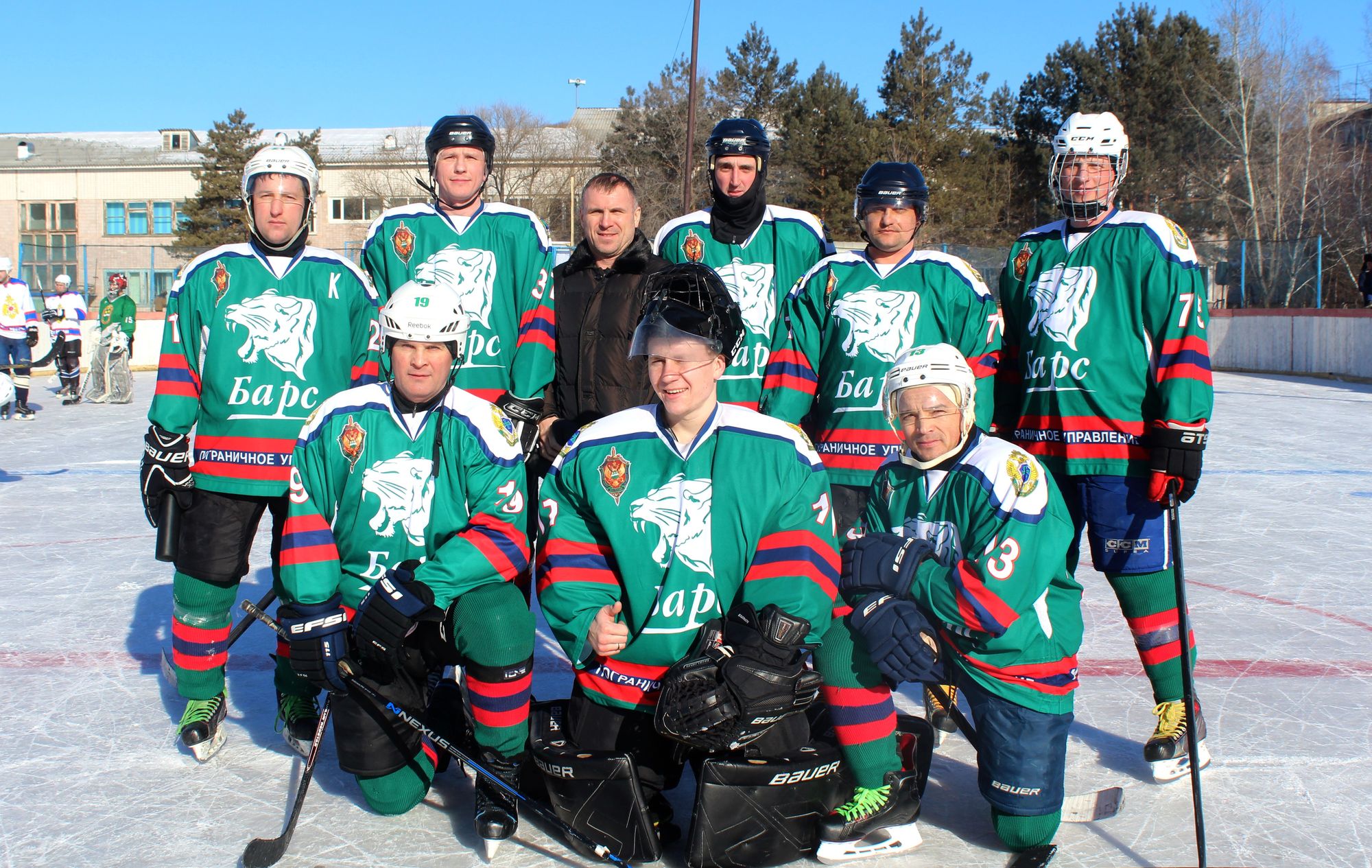 Моховая Падь - это территория бывшей дислокации танкового училища. Хоккеисты местной команды "Восток" пригласили для участия в турнире памяти Дмитрия Комарова команды "Барс" (Пограничное Управление), "Факел" (МЧС) и ДВОКУ.