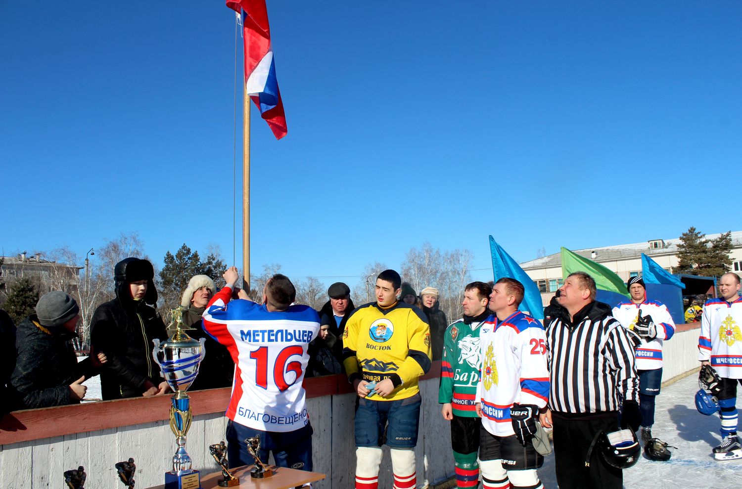 18 февраля в Моховой Пади состоялся турнир по хоккею, посвященный памяти Героя Советского Союза Дмитрия Евлампиевича Комарова.
