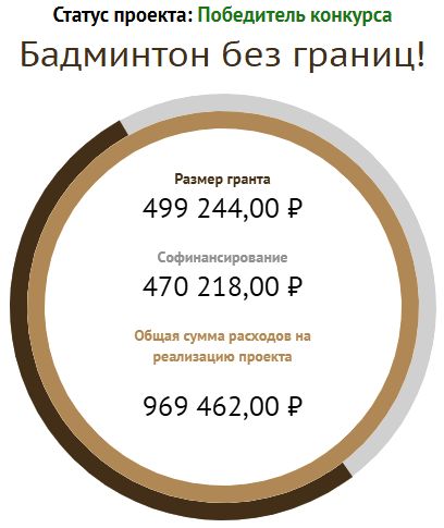 15 июня 2020 года на заседании Координационного комитета "Амурская областная общественная спортивная организация тенниса и бадминтона" оказалась среди Победителей второго конкурса на предоставление грантов Президента Российской Федерации на развитие гражданского общества в 2020 году.