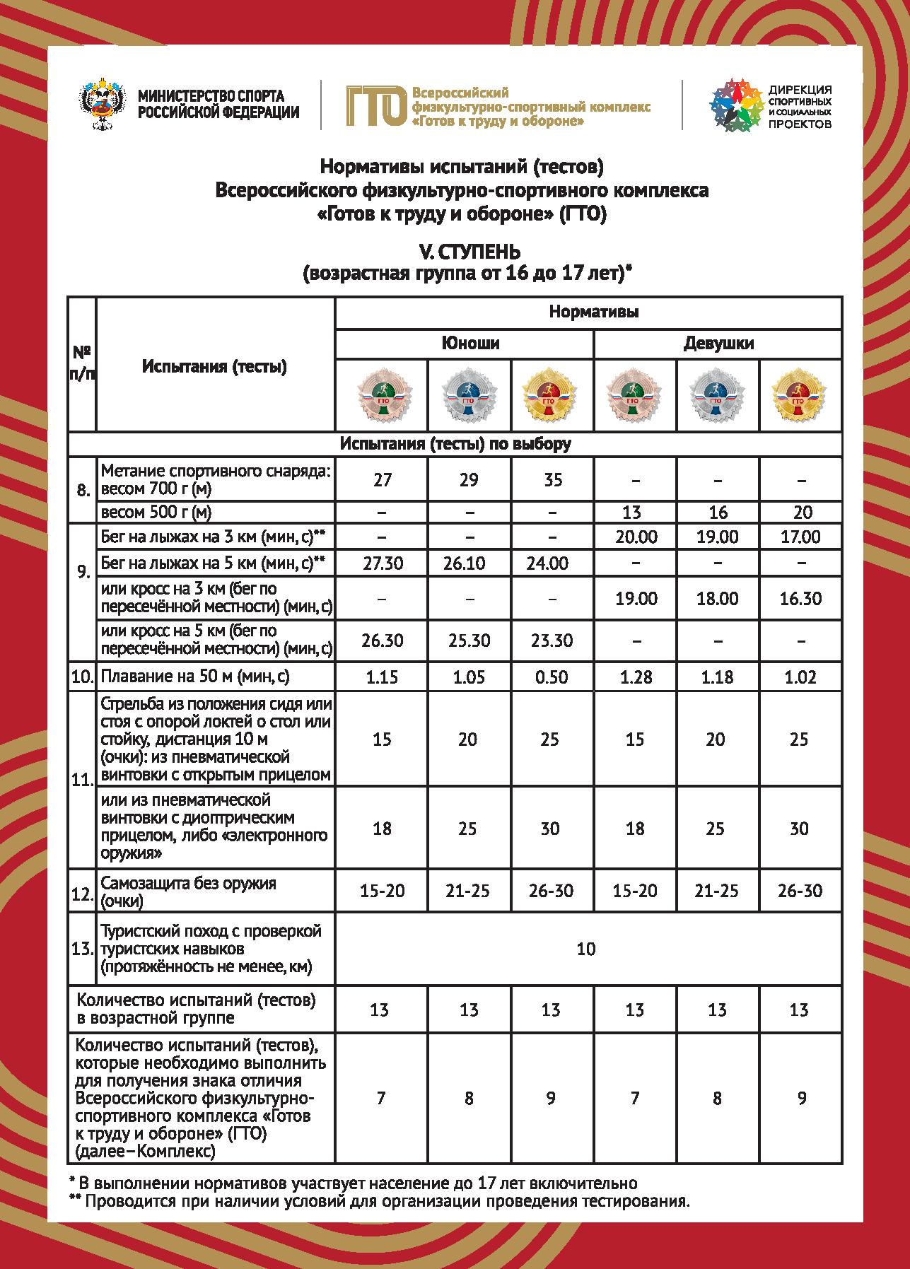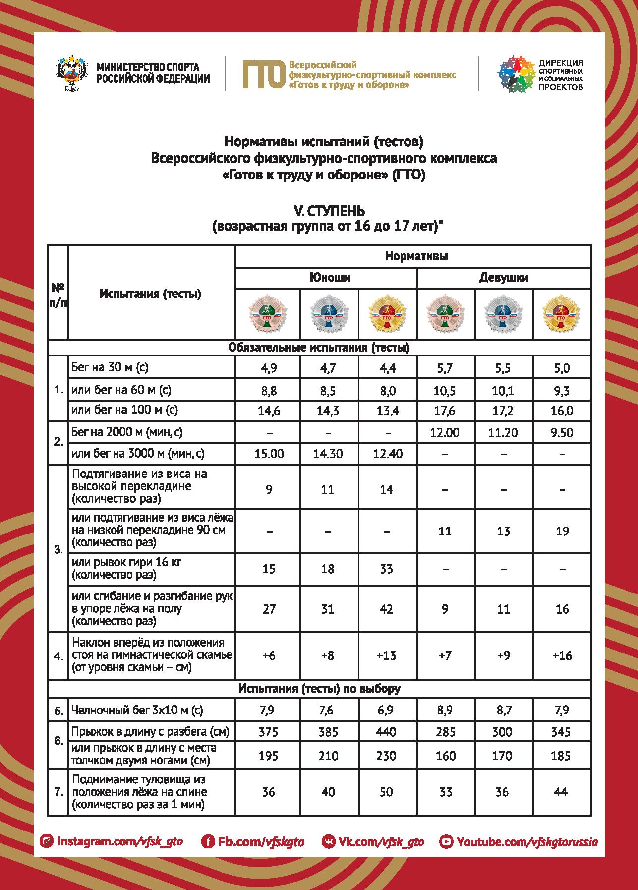 Нормативы испытаний (тестов) ВФСК "Готов к труду и обороне"