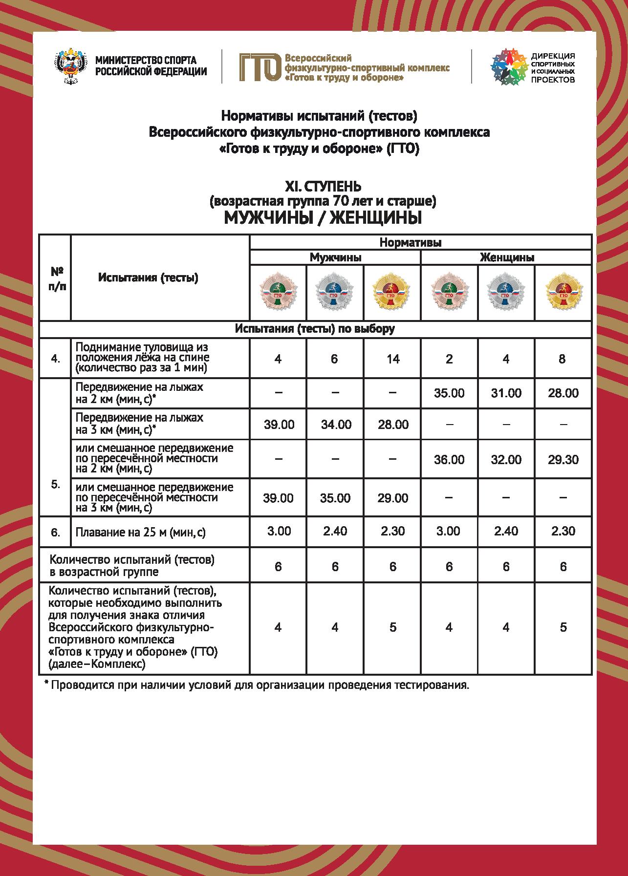 Нормативы испытаний (тестов) ВФСК "Готов к труду и обороне"
