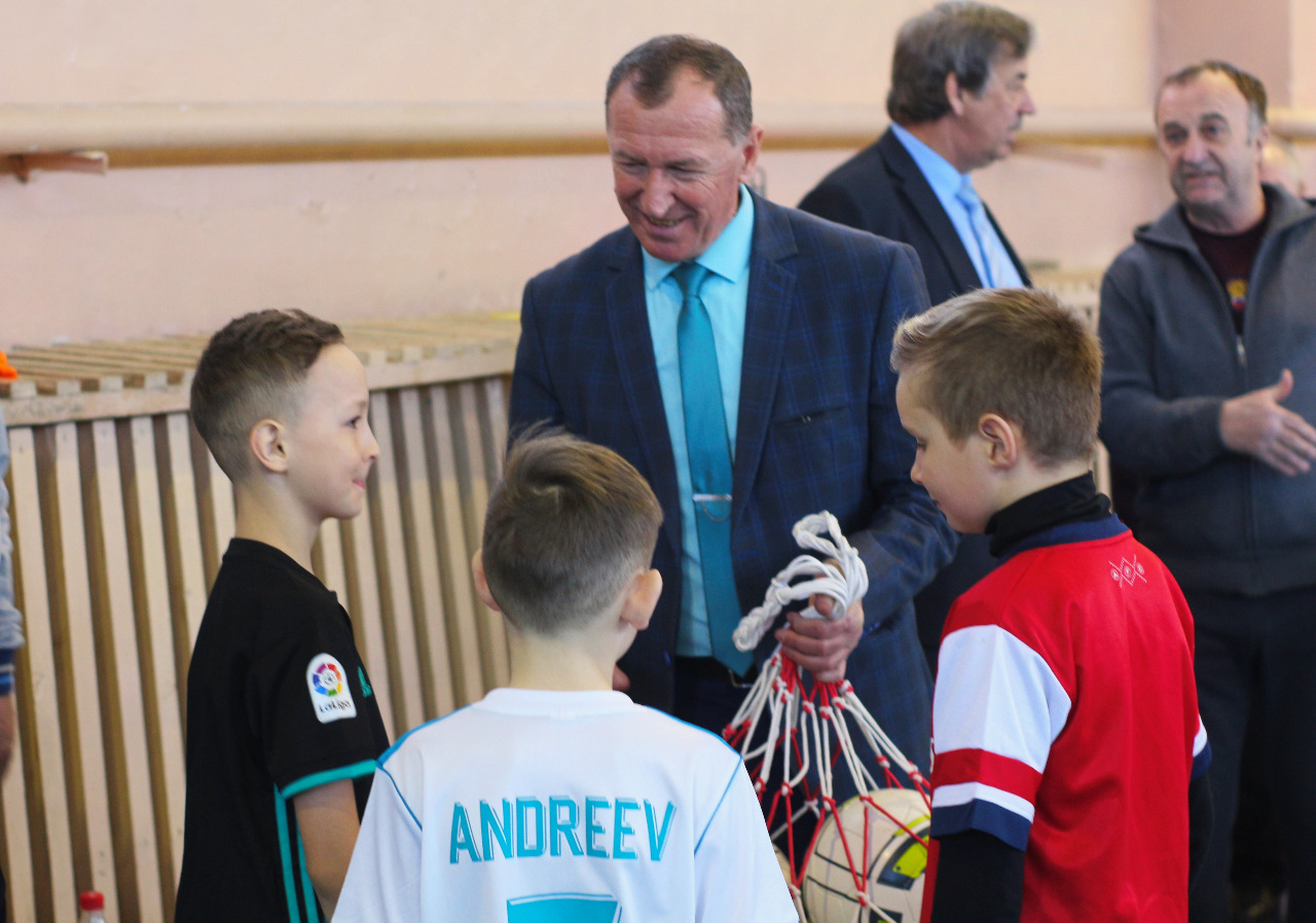 Заместитель министра спорта области Евгений Лобанов вручил юным футболистам комплект мячей.
