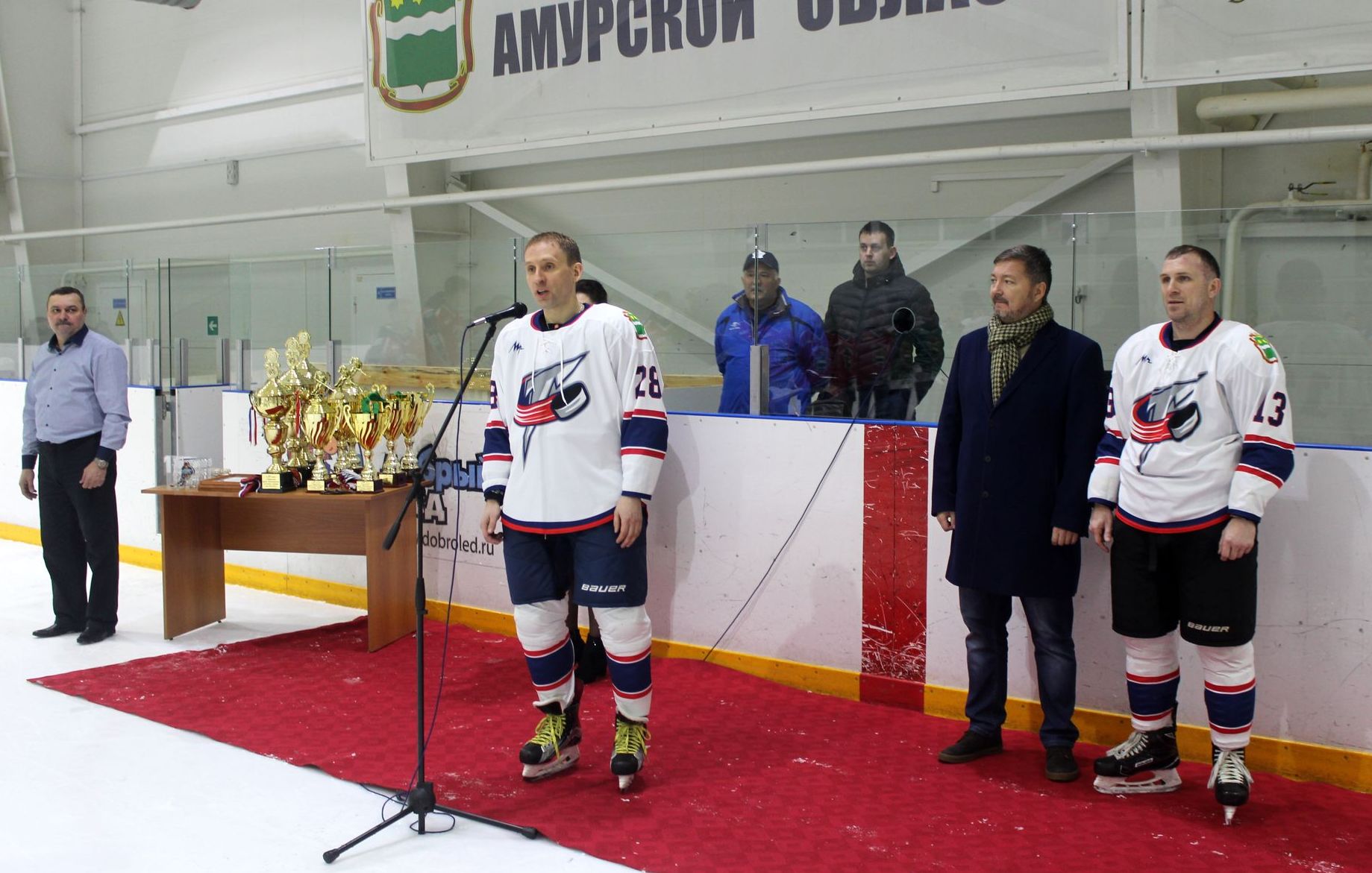 Председатель федерации хоккея Благовещенска Михаил Михайлович Лапин от имени организаторов турнира поблагодарил спортсменов за их вклад в развитие этого вида спорта в Приамурье и пригласил к участию в традиционном турнире на кубок, посвященный памяти известных амурских спортсменов и тренеров по хоккею с шайбой Равиля Иртуганова и Евгения Егорова, который начнется через несколько дней.
